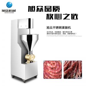 SZ-200灌腸機,適合灌制各種香腸、紅腸、臘腸及糊狀制品。本機使用敞開式不銹鋼料斗,適用于連續(xù)添加物料;與灌裝手接觸部件全部采用優(yōu)質不銹鋼制作以防生銹;該機自動貨程度高,技術先進、性能穩(wěn)定、操作簡便、工作效率高,具有不破壞物料成份,保質、保鮮等特點。