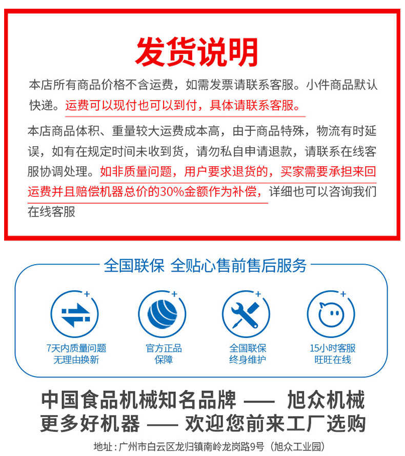 廣州旭眾食品機(jī)械有限公司是一家集科研開發(fā),生產(chǎn)設(shè)計(jì),營銷服務(wù)為一體的現(xiàn)代化生產(chǎn)企業(yè)?,F(xiàn)代化生產(chǎn)車間,精湛制造技術(shù),所產(chǎn)機(jī)械歷經(jīng)市場重重考驗(yàn),不斷贏得海內(nèi)外客戶的贊譽(yù)。