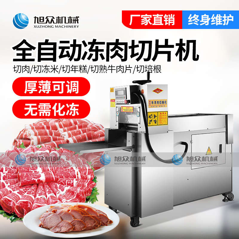 XZ-羊肉切片機,一次成片切片神器,全自動凍肉數(shù)控切片機,肉片自動打卷|厚薄可調(diào)|無需化凍|一機多用。你還用手工切片嗎?旭眾全自動羊肉切片機一機多用,輕松解決切割問題。
