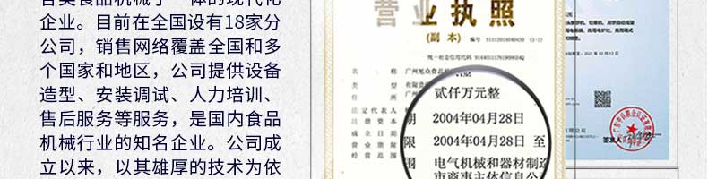 廣州旭眾食品機械有限公司是一家集科研開發(fā),生產(chǎn)設(shè)計,營銷服務(wù)為一體的現(xiàn)代化生產(chǎn)企業(yè)?,F(xiàn)代化生產(chǎn)車間,精湛制造技術(shù),所產(chǎn)機械歷經(jīng)市場重重考驗,不斷贏得海內(nèi)外客戶的贊譽。