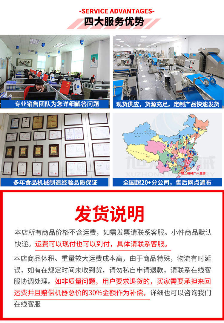 廣州旭眾食品機(jī)械有限公司是一家集科研開發(fā),生產(chǎn)設(shè)計(jì),營銷服務(wù)為一體的現(xiàn)代化生產(chǎn)企業(yè)。現(xiàn)代化生產(chǎn)車間,精湛制造技術(shù),所產(chǎn)機(jī)械歷經(jīng)市場重重考驗(yàn),不斷贏得海內(nèi)外客戶的贊譽(yù)。