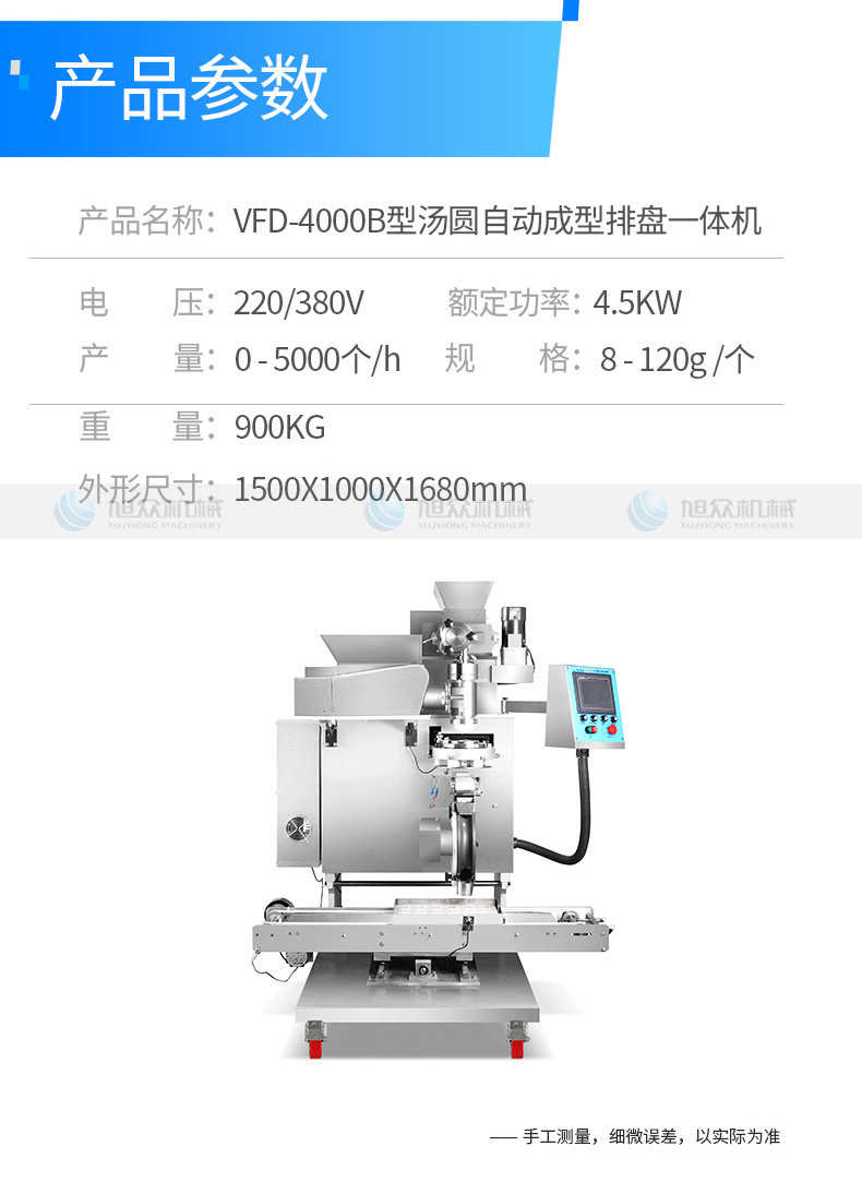 VFD-4000B湯丸機(jī),告別手工時(shí)代旭僉多功能湯圓機(jī)輕松解決問題。大產(chǎn)量輕松滿足需求容量大強(qiáng)勁電機(jī),產(chǎn)量可達(dá)4000個(gè)小時(shí),爭取每一分黃金時(shí)間