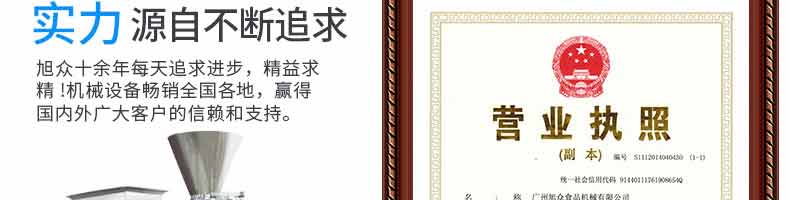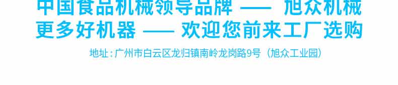 廣州旭眾食品機(jī)械有限公司是一家集科研開發(fā),生產(chǎn)設(shè)計,營銷服務(wù)為一體的現(xiàn)代化生產(chǎn)企業(yè)?,F(xiàn)代化生產(chǎn)車間,精湛制造技術(shù),所產(chǎn)機(jī)械歷經(jīng)市場重重考驗,不斷贏得海內(nèi)外客戶的贊譽(yù)。