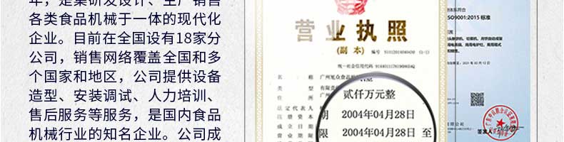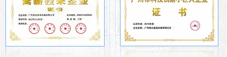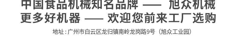 廣州旭眾食品機(jī)械有限公司是一家集科研開發(fā),生產(chǎn)設(shè)計(jì),營銷服務(wù)為一體的現(xiàn)代化生產(chǎn)企業(yè)。現(xiàn)代化生產(chǎn)車間,精湛制造技術(shù),所產(chǎn)機(jī)械歷經(jīng)市場重重考驗(yàn),不斷贏得海內(nèi)外客戶的贊譽(yù)。