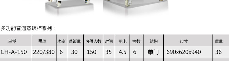 CH-A多功能普通蒸飯柜,適用于大米、面制品、肉類、海鮮類等。深受賓館、飯店、工廠、機(jī)關(guān)食堂、部隊(duì)、大專院校等單位的歡迎。
